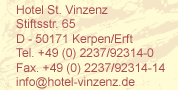 in Kerpen/Erft auf den Seiten des Hotel St. Vinzenz und wünschen Ihnen viel Spaß beim Besuch unserer Seiten!